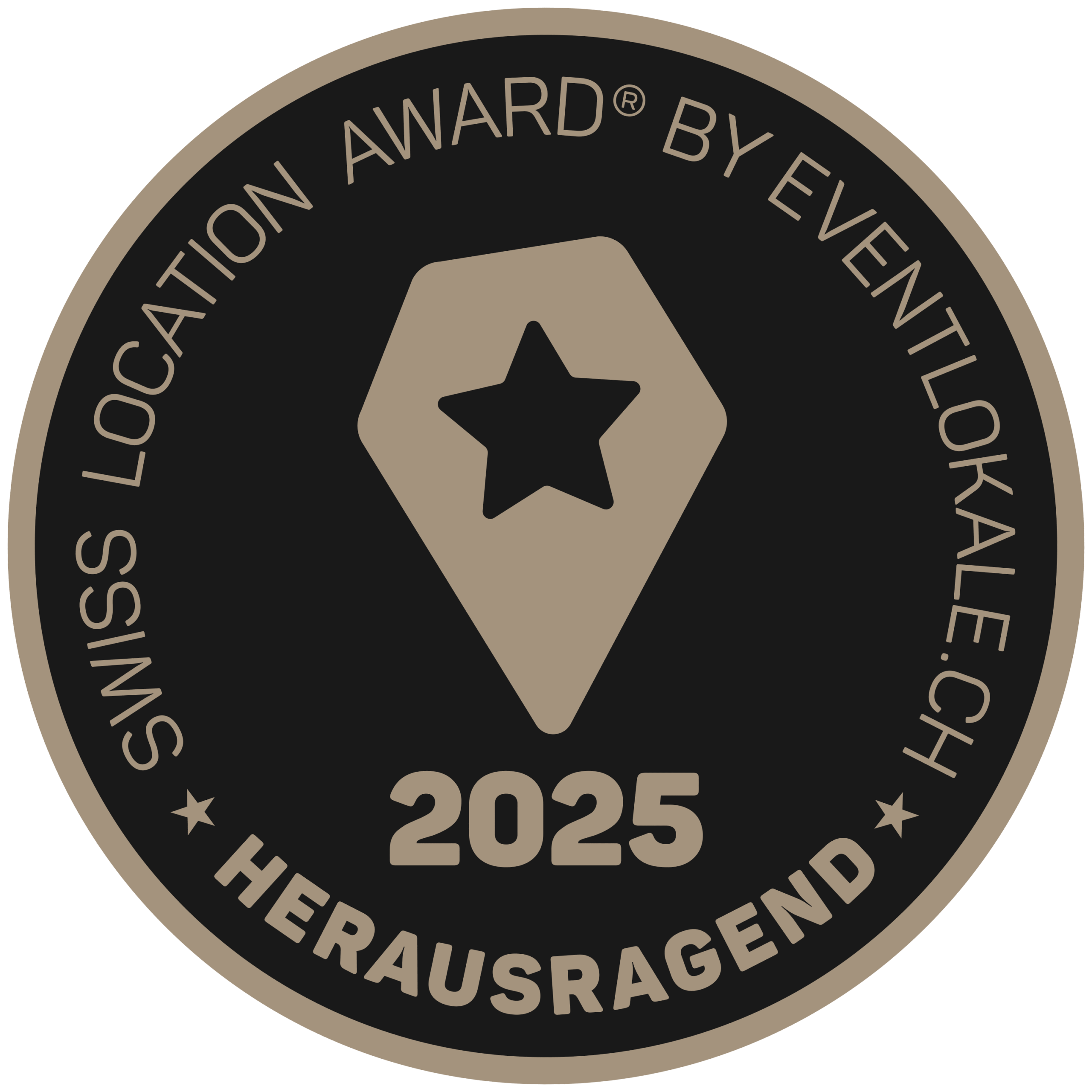 Unsere Erfolgsgeschichte schreibt beim Swiss Location Award 2025 ein neues Kapitel. Mit der Punktzahl 9.1 und dem Gütesiegel "Herausragend" gehören wir zu den besten Genusslocation der Schweiz!
